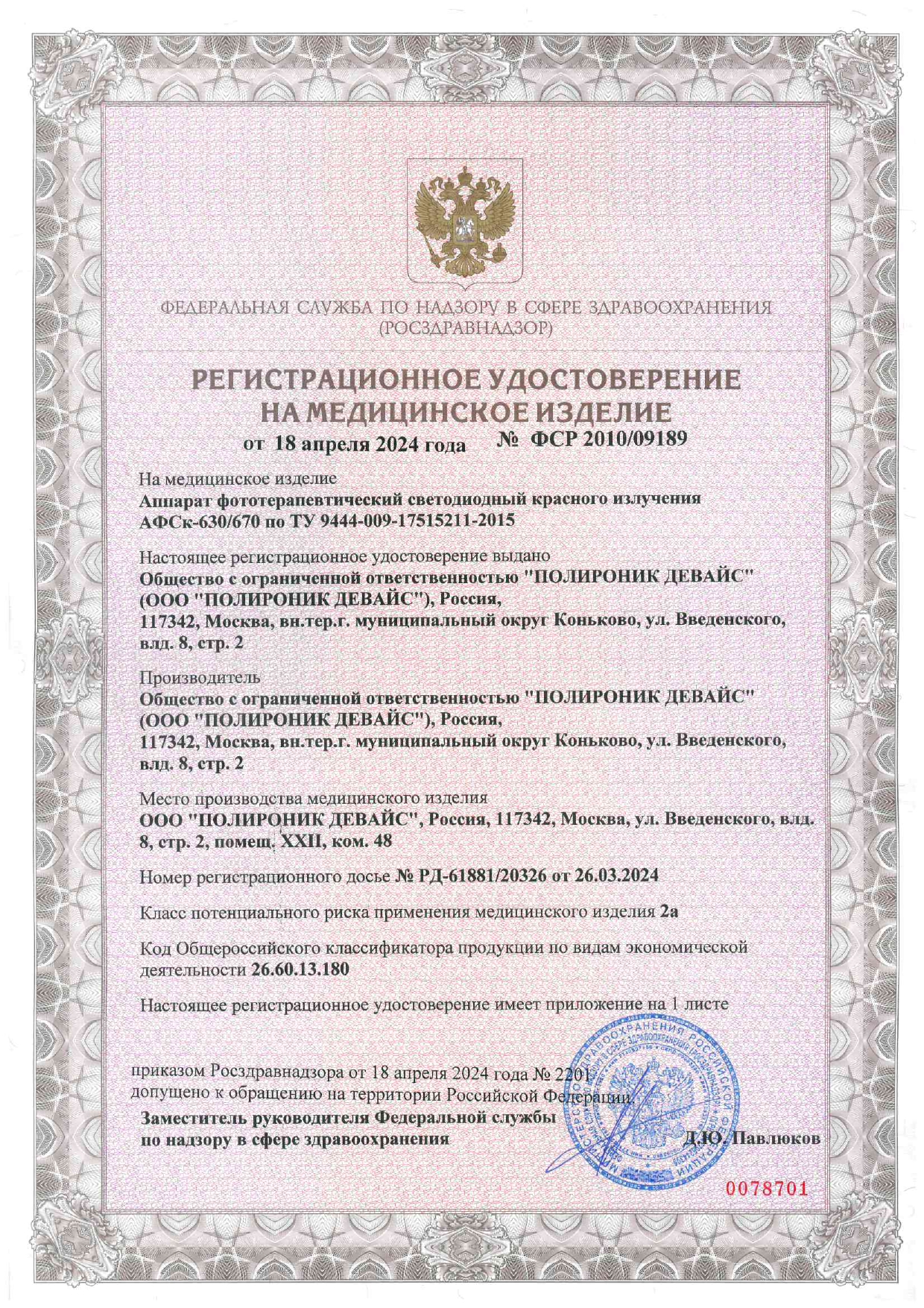 «АФС-ПОДОЛОГ» — медицинское устройство российского производства, предназначенное для лечения онихомикоза и локальных патологий стоп посредством фотодинамического воздействия. Аппарат имеет действующее регистрационное удостоверение.