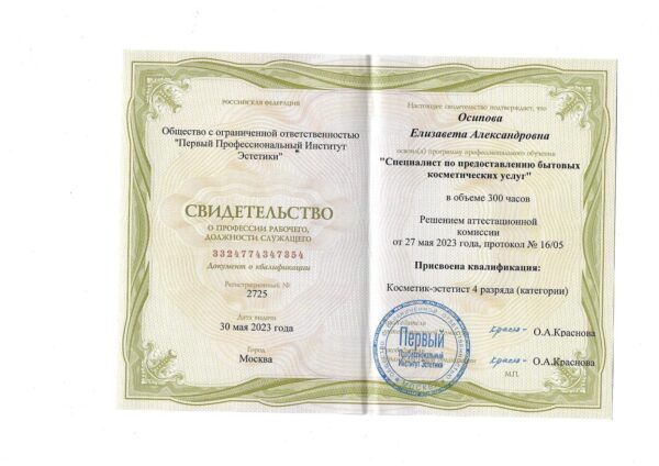 Каждый косметолог имеет медицинское образование и дополнительное образование педагога